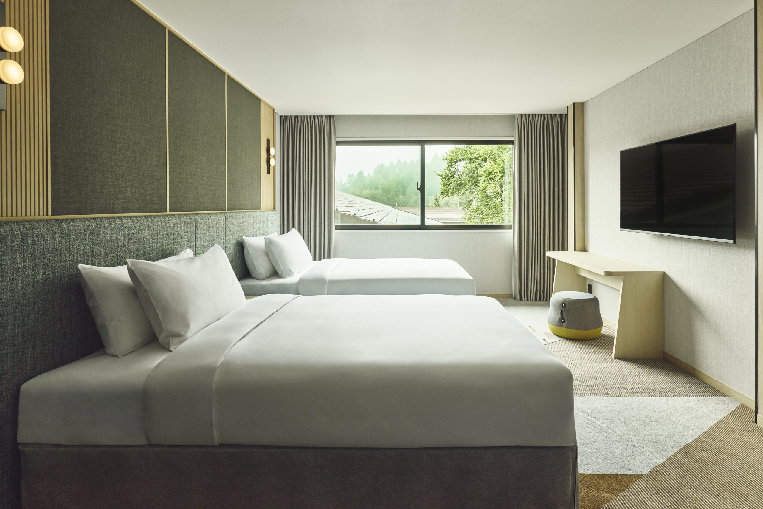 洗練されたインテリアと温かみのある色調が調和したお部屋には、窓から柔らかな自然光が差し込み、穏やかなひとときを演出します。